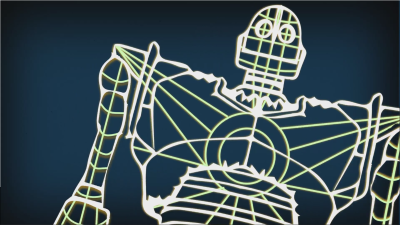 A full sized Iron Giant used in the video. The design comes from original sketches from the movie with added line work which was then manipulated in the video.